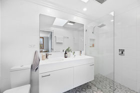 Boasting four spacious bedrooms, two include built-in wardrobes, while the master suite serves as a private retreat complete with a walk-in wardrobe and a stylish ensuite featuring double basins and a large skylight that fills the space with natural light.