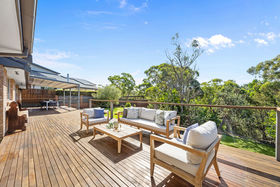 The heart of the home is the expansive open-plan living and dining area, which flows seamlessly into the generously sized kitchen. Thoughtfully designed with ample storage and a large window overlooking the leafy bush outlook, the kitchen enjoys both practicality and a tranquil setting. Recently updated bathrooms, laundry and kitchen areas further enhance the home's contemporary appeal. Timber flooring and plush carpet throughout, along with ducted air conditioning, ensure year-round comfort.