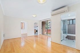 Featuring timber flooring throughout, the apartment offers a spacious lounge and dining area with split system air-conditioning, opening onto a private balcony. The separate kitchen provides ample storage space, while the combined bathroom and laundry enhance functionality.
